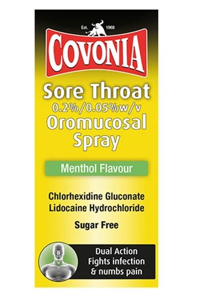 Covonia Sore Throat Oromucosal Spray is a dual-action treatment designed to alleviate the discomfort of sore throats by numbing pain and combating infection. This sugar-free spray is suitable for adults and children aged 12 and over.
