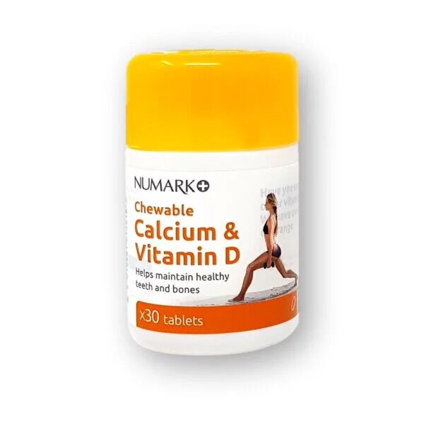 Numark Calcium and Vitamin D chewable tablets combine two essential nutrients – Calcium and Vitamin D3 – that work together to maintain strong bones, healthy teeth, and normal muscle function.