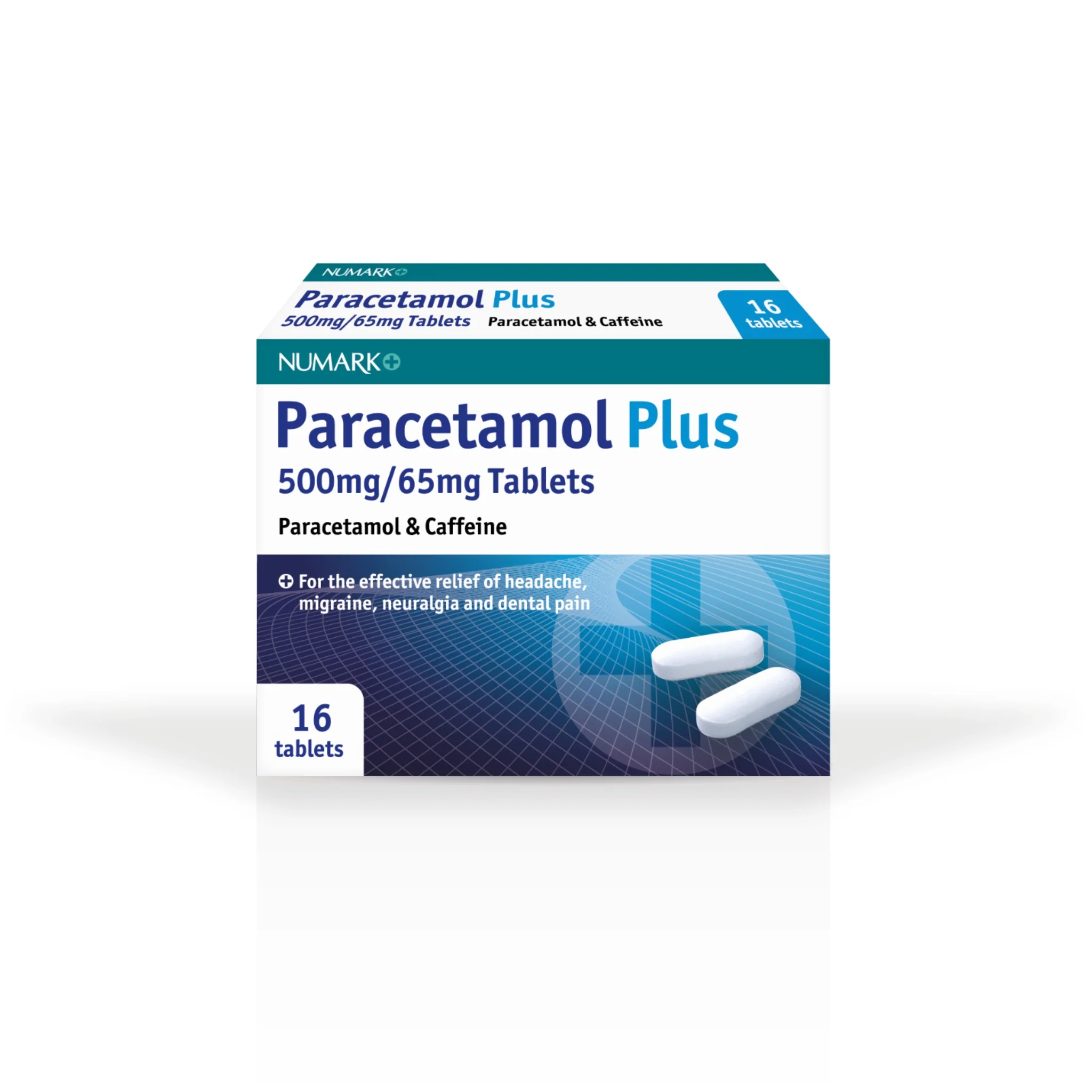 Numark Paracetamol Plus 500mg/60mg Tablets combine paracetamol (500mg) and caffeine (60mg) to help relieve mild to moderate pain. The addition of caffeine can enhance the effects of paracetamol, supporting relief from discomfort and helping improve alertness when pain is present.