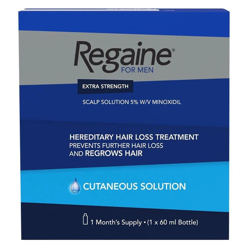 Regaine Extra Strength contains minoxidil, which improves blood flow to the hair follicles, reactivating them and promoting new hair growth.