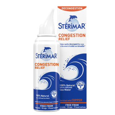 Experience swift, natural relief from nasal congestion with Sterimar Congestion Relief Nasal Spray. This 100% natural sea water-based solution is enriched with copper and magnesium salts to help clear even thick mucus and rapidly decongest your nose during colds and sinusitis.